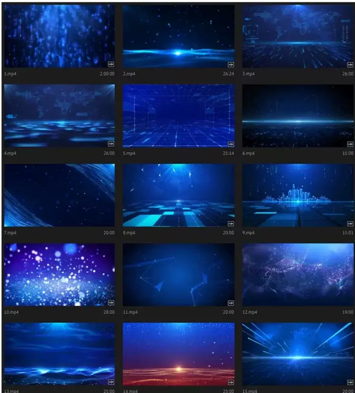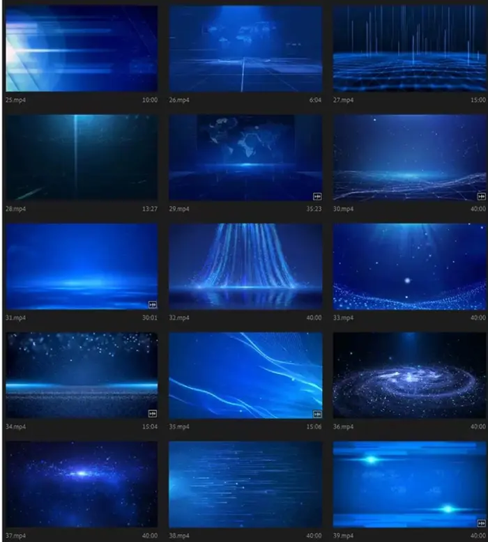 50个唯美蓝色科技粒子大屏幕背景视频素材